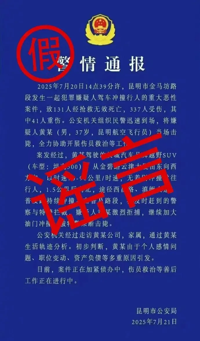 经查,黄某忠(男、39岁)为博取关注、吸引眼球,在互联网平台发布该虚假“警情通报”,造成谣言传播扩散,扰乱公共秩序。目前,公安机关已依法对黄某忠刑事拘留。